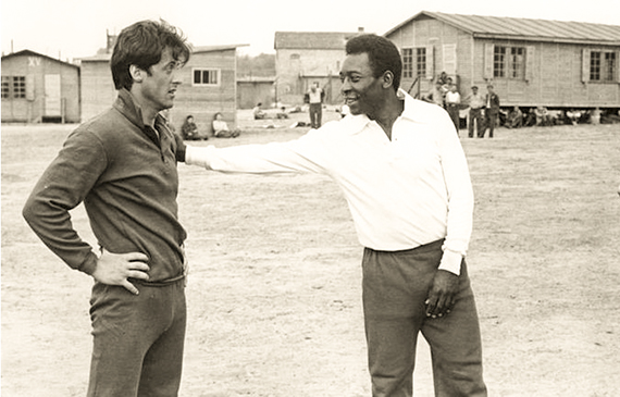 A falta de habilidade futebolística de Stallone levou a uma troca de papéis com Pelé no filme Escape to Victory, de 1981. Quando as filmagens do filme Escape to Victory começaram em 1980, Sylvester Stallone já era um grande sucesso na indústria cinematográfica graças aos dois primeiros filmes de Rocky. Escape to Victory conta a história de um jogo fictício entre um time nazista e uma equipe de prisioneiros durante a Segunda Guerra Mundial.