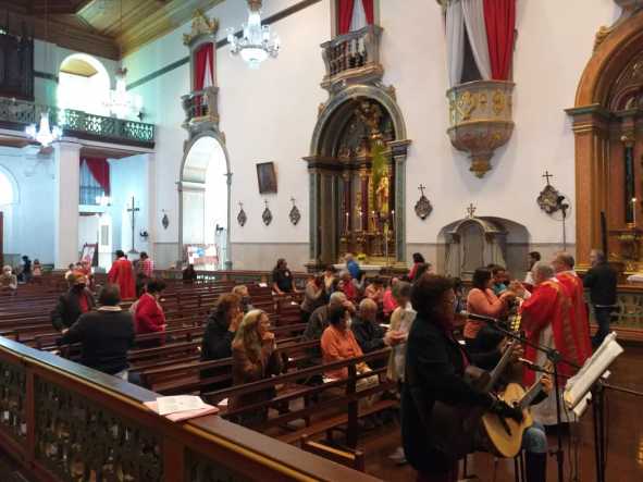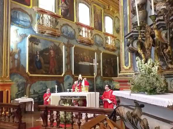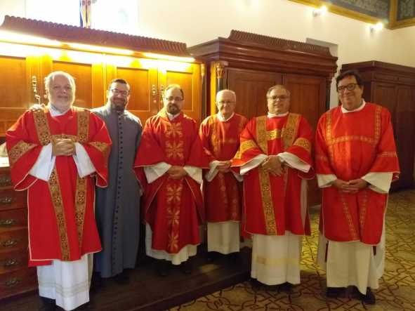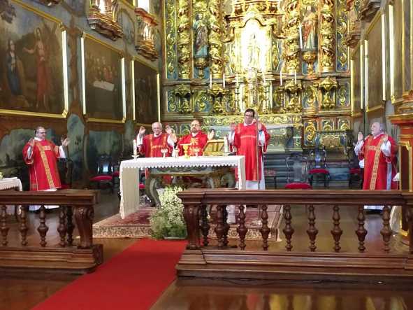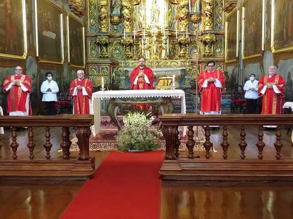 A missa foi celebrada pelo pároco, padre Francisco Carlos, e contou com a presença dos quatro diáconos permanentes que atualmente prestam serviço na paróquia: Francisco Moraes, Paulo Halter, Estêvão Scalet e Tadeu Italiani.