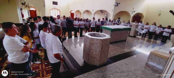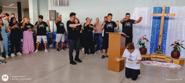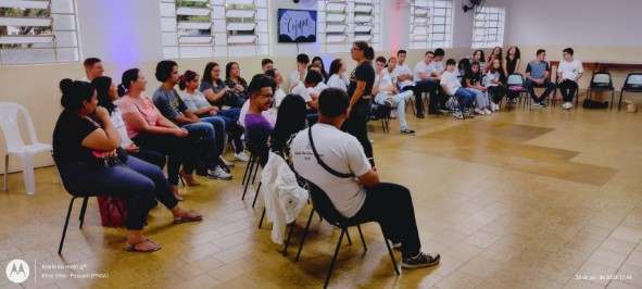 No sábado (28), os jovens da Cojapa receberam a visita de missionários da Comunidade “Colo de Deus”, de Campinas. Os missionários Rafael, Vanessa e Rafaela conversaram com os jovens sobre “Confiança”, refletindo sobre o trecho do livro de Jeremias (Jr 17,7), sobre como é bom sentir o Amor de Deus e saber que Ele está conosco e não nos decepciona. Segundo a coordenadora da Cojapa, Rosângela Sebenelli (Rose), “recebemos duas palavras dos missionários: neste ano de 2023 seremos conduzidos pelo Espírito Santo e somos uma ‘Geração de Pentecostes'”. O encontro terminou com a Missa, na qual os jovens da Cojapa ficaram responsáveis pela Acolhida e pela Liturgia.