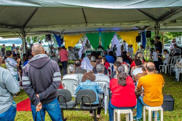 Tendas foram armadas para acolher os fiéis para a celebração de inauguração da Fazenda Esperança de Itu, no último sábado (4).