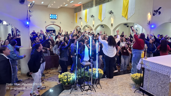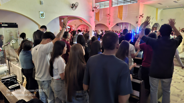 A juventude da Comunidade Colo de Deus – Missão Campinas foi contagiada por uma onda de fé e alegria no último sábado (09/08), durante o evento realizado na Paróquia Nossa Senhora Aparecida, em Itu. O encontro reuniu cerca de 300 jovens para uma noite de música, pregação e profunda oração, reforçando a mensagem de esperança e a força da união na fé.