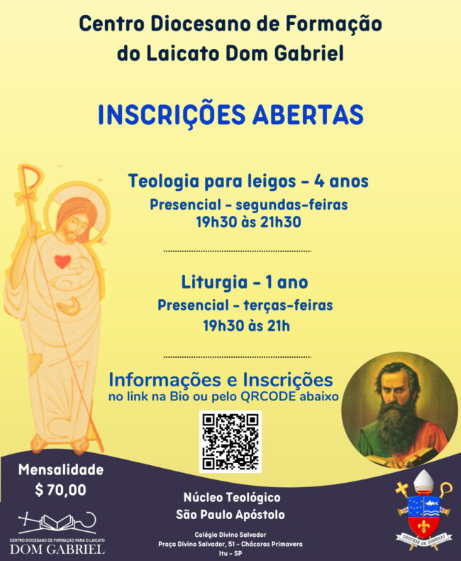 O Núcleo Teológico São Paulo Apóstolo, de Itu, está com inscrições abertas para os cursos de Teologia e Liturgia, voltados aos leigos. As aulas são presenciais e acontecem no Colégio Divino Salvador.