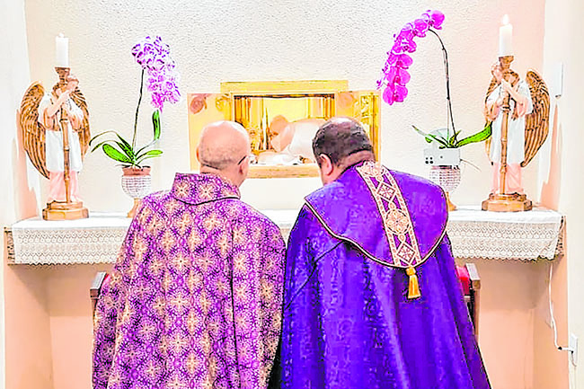Após a homilia, diante do bispo e da assembleia, o Pe. Joaquim renovou as promessas sacerdotais feitas no dia de sua ordenação. Em seguida, dirigiram-se à pia batismal, onde rezaram, e também à imagem de Nossa Senhora Aparecida, diante da qual fizeram outra oração. Logo depois, o Pe. Joaquim recebeu as chaves do sacrário e foi conduzido por Dom Arnaldo até ele, onde ambos realizaram um momento de oração diante do Santíssimo Sacramento, confiando ao Senhor a nova missão.Concluída a Liturgia da Palavra, Dom Arnaldo transmitiu a presidência da Eucaristia ao novo pároco, que deu continuidade à celebração. Após a Comunhão, foram apresentadas ao Pe. Joaquim as comunidades, pastorais e movimentos que compõem a Paróquia Nossa Senhora Aparecida.